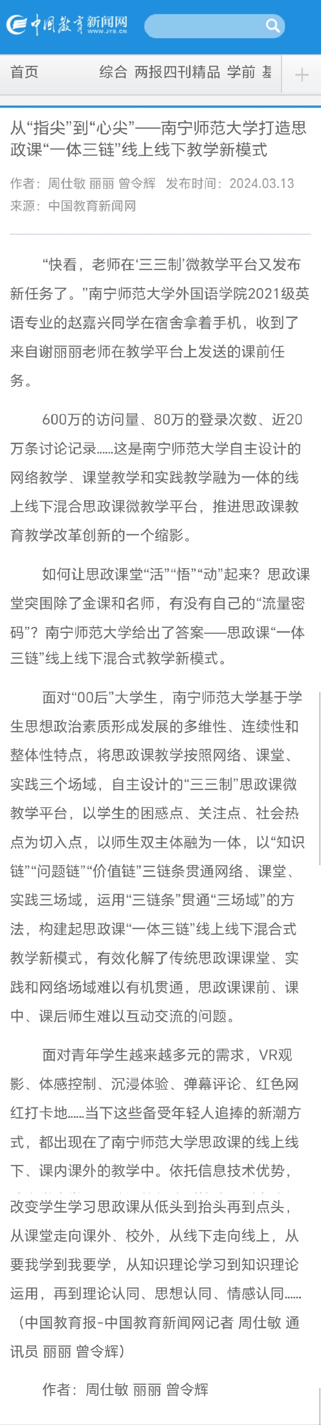 【中国教育新闻网】从“指尖”到“心尖”——南宁师范大学打造思政课“一体三链”线上线下教学新模式