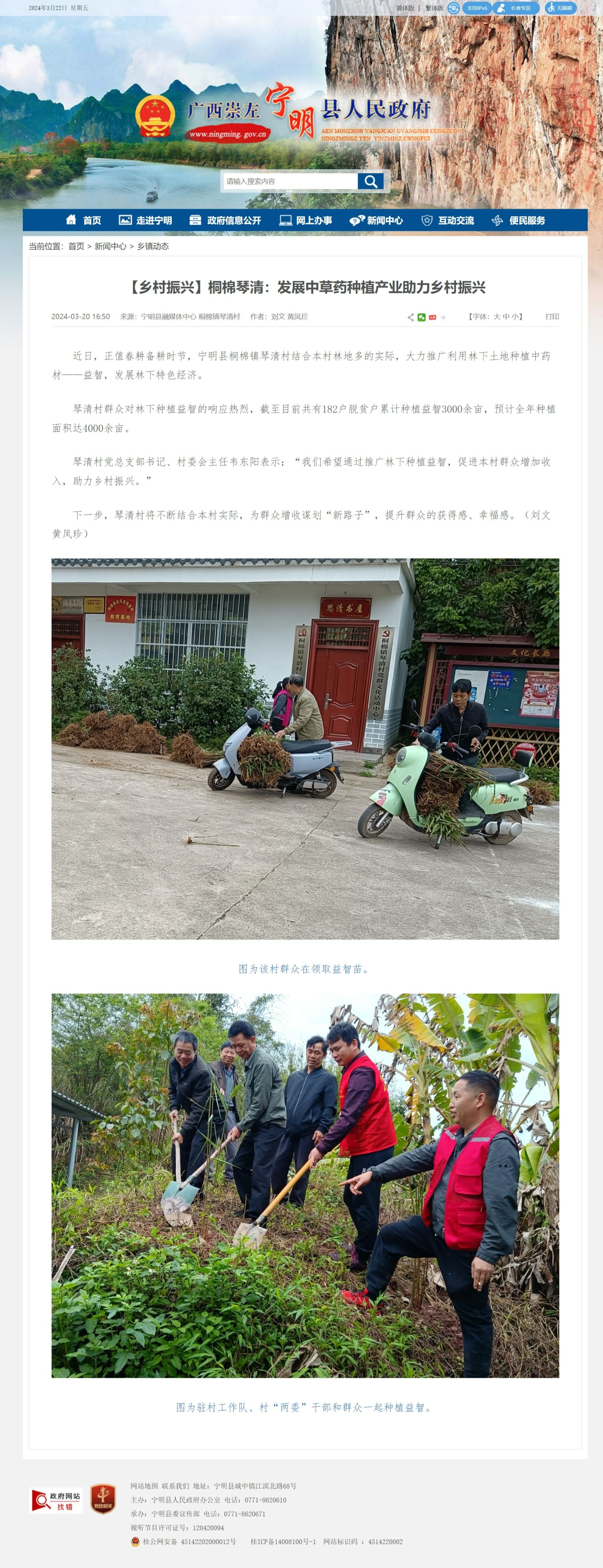 【广西崇左宁明县人民政府网站】【乡村振兴】桐棉琴清:发展中草药种植产业助力乡村振兴