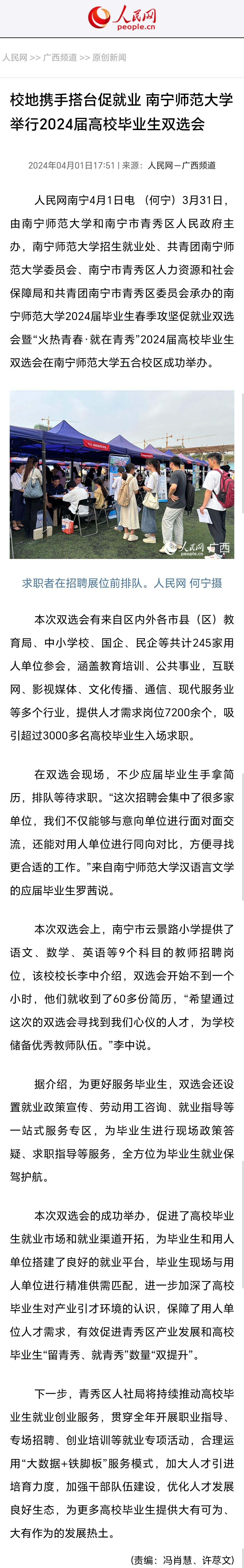【人民网】校地携手搭台促就业 南宁师范大学举行2024届高校毕业生双选会