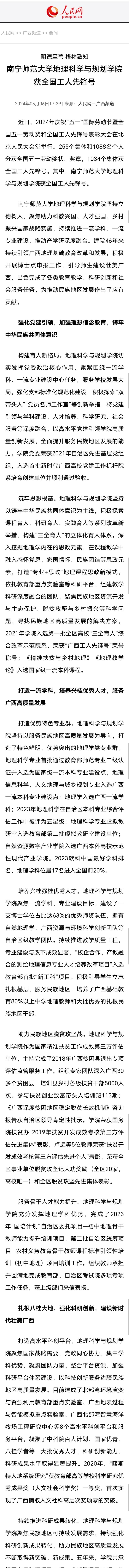 【人民网】明德至善 格物致知 南宁师范大学地理科学与规划学院获全国工人先锋号