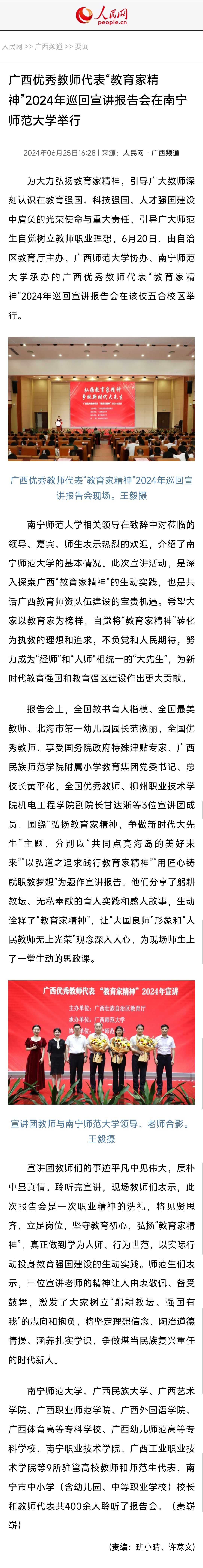 广西优秀教师代表“教育家精神”2024年巡回宣讲报告会在南宁师范大学举行 (people.com.cn)