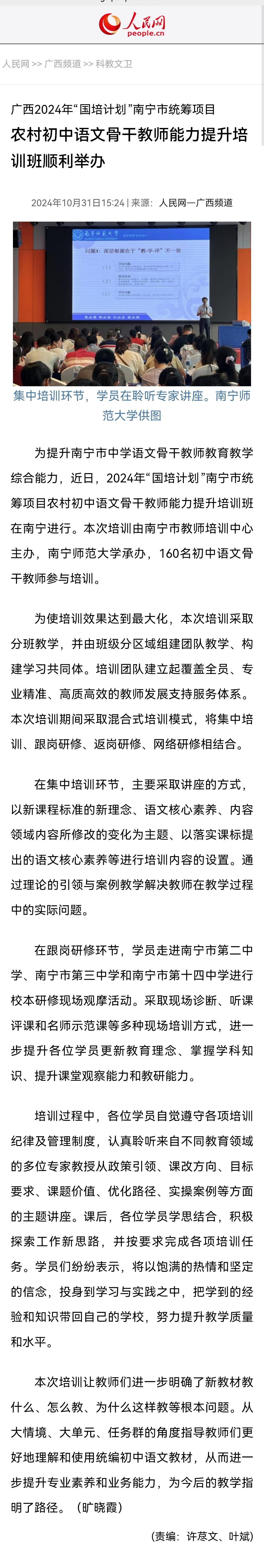 【人民网】农村初中语文骨干教师能力提升培训班顺利举办