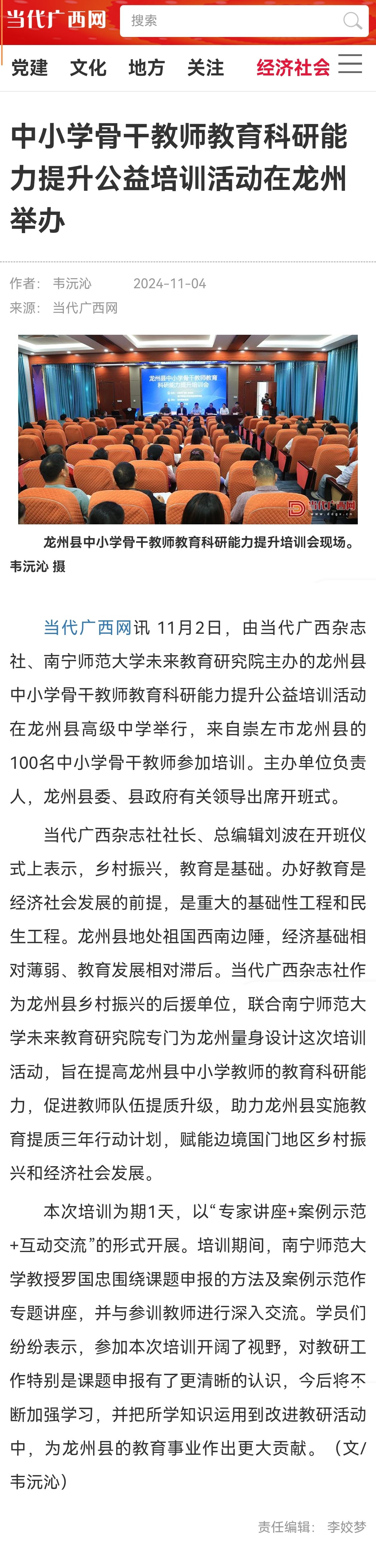 【当代广西网】中小学骨干教师教育科研能力提升公益培训活动在龙州举办