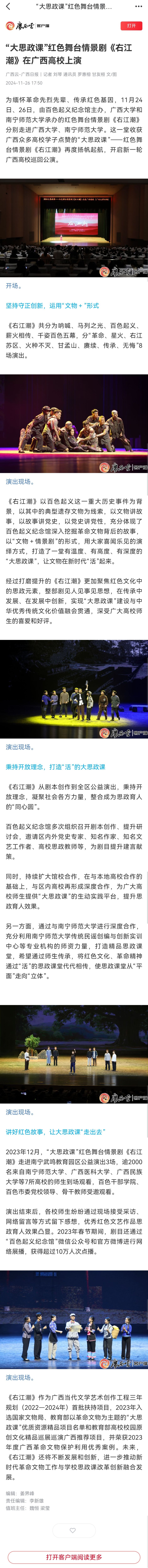 【广西云-广西日报】“大思政课”红色舞台情景剧《右江潮》在广西高校上演