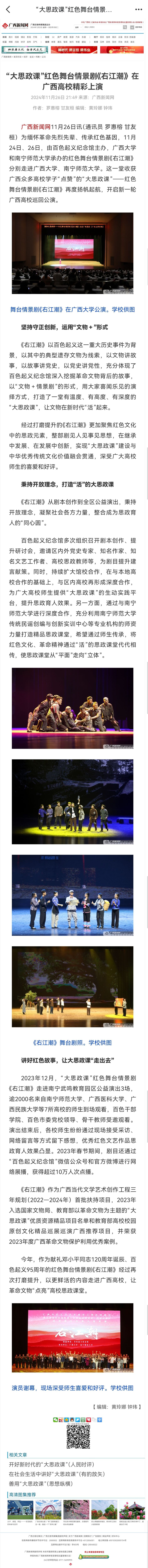 【广西云-广西日报】“大思政课”红色舞台情景剧《右江潮》在广西高校上演