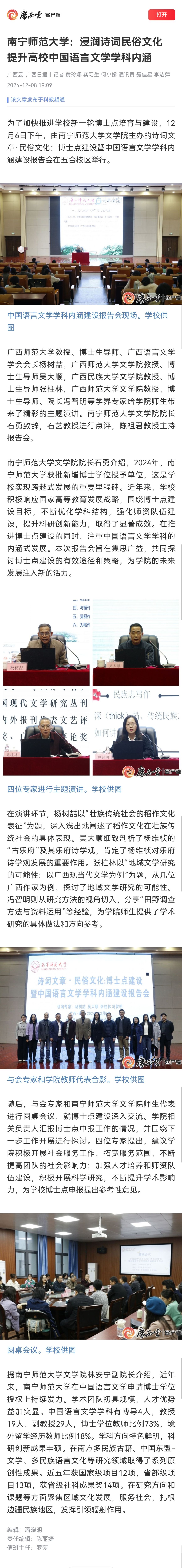 【广西云-广西日报】南宁师范大学:浸润诗词民俗文化 提升高校中国语言文学学科内涵