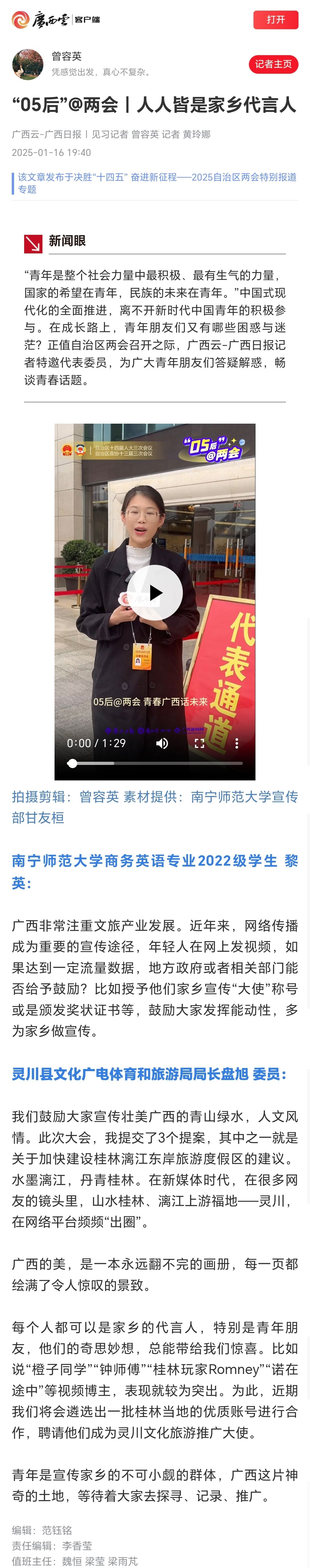 【广西云——广西日报】“05后”@两会|人人皆是家乡代言人