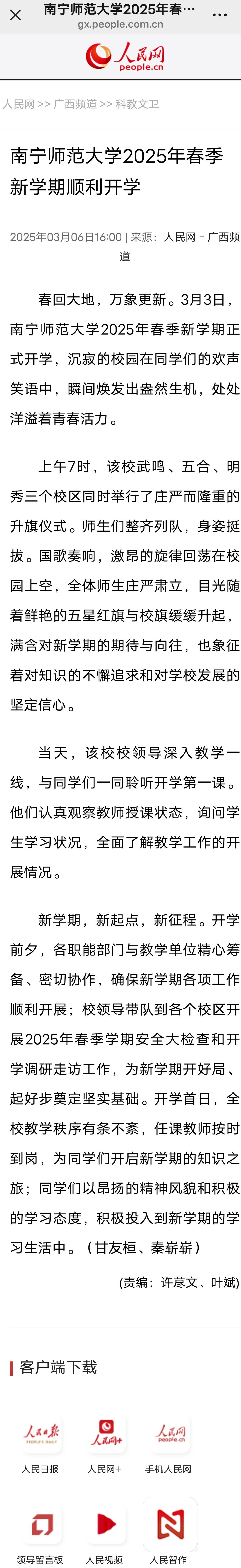 【人民网】南宁师范大学2025年春季新学期顺利开学