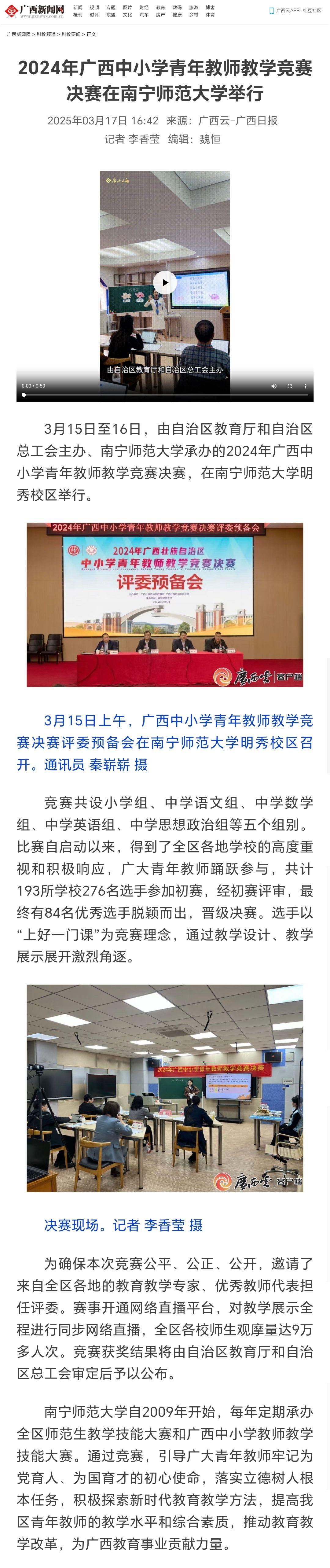 【广西新闻网】2024年广西中小学青年教师教学竞赛决赛在南宁师范大学举行