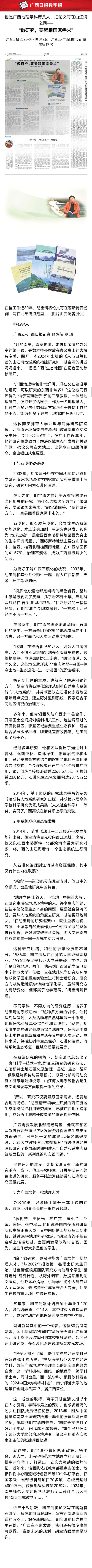 【广西日报】他是广西地理学科带头人,把论文写在山江海之间——“做研究,要紧跟国家需求”