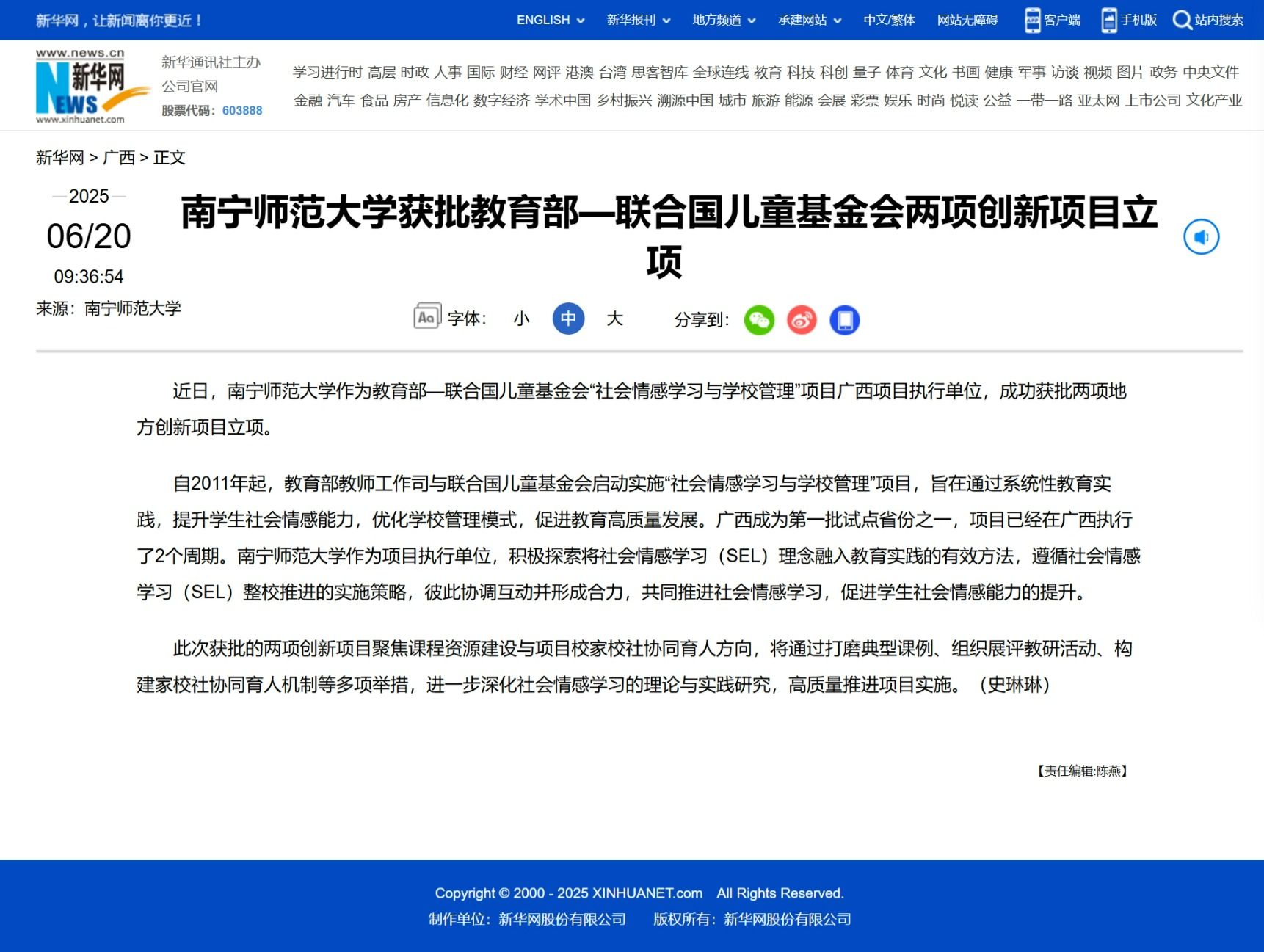 【新华网】南宁师范大学获批教育部—联合国儿童基金会两项创新项目立项