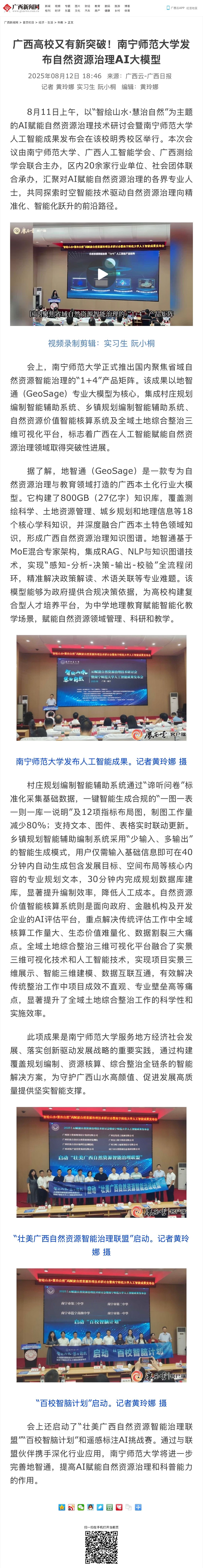 【广西新闻网】广西高校又有新突破!南宁师范大学发布自然资源治理AI大模型