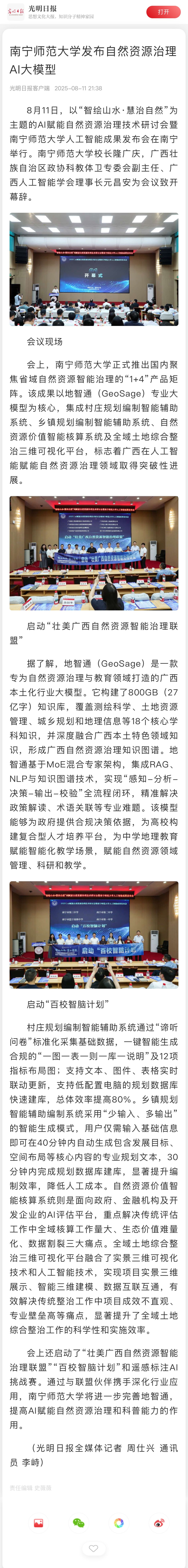 【光明日报】南宁师范大学发布自然资源治理AI大模型