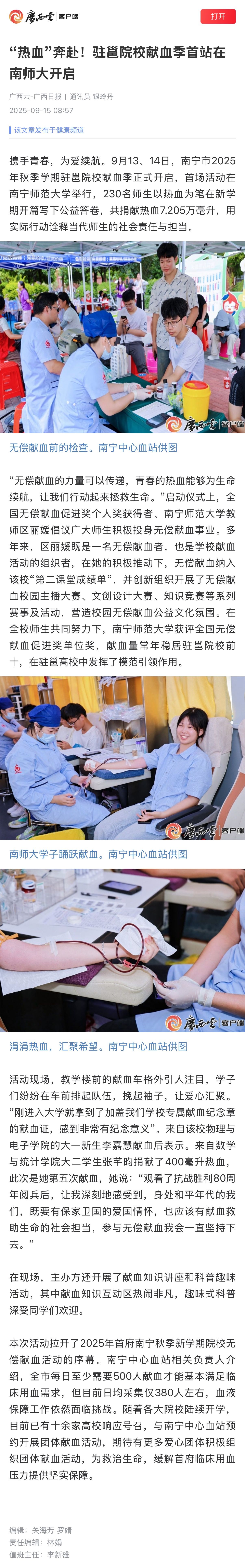 【广西云-广西日报】“热血”奔赴!驻邕院校献血季首站在南师大开启