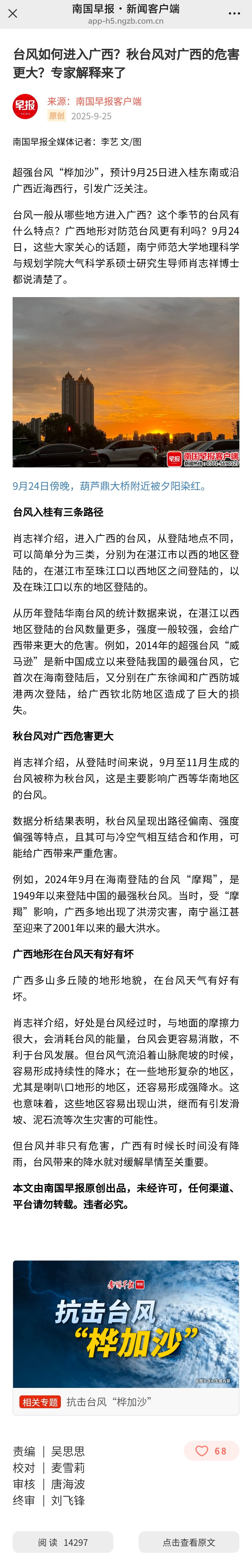 【南国早报】广西多地出现彩霞、“悬日”等现象,美丽晚霞送来台风“预告信”