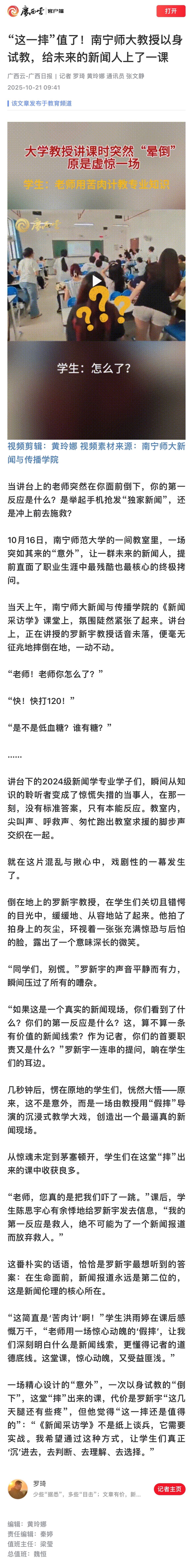 【广西云-广西日报】“这一摔”值了!南宁师大教授以身试教,给未来的新闻人上了一课