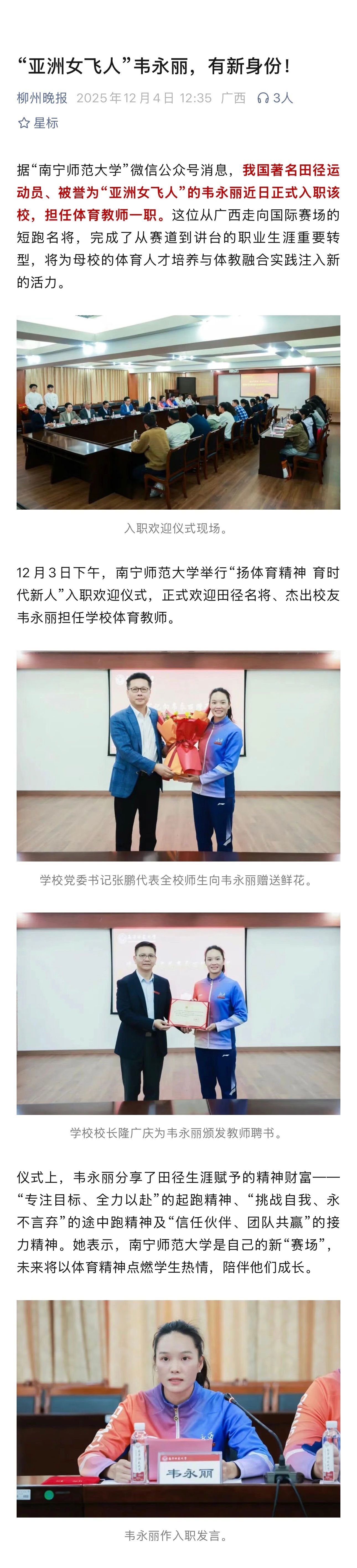 【柳州晚报】“亚洲女飞人”韦永丽,有新身份!