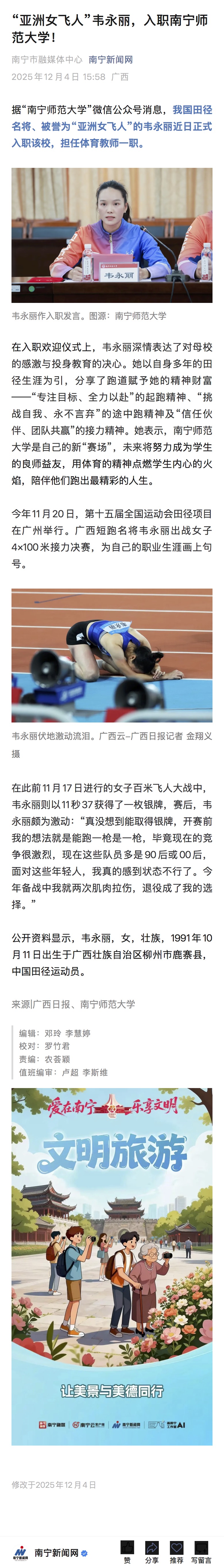 【柳州晚报】“亚洲女飞人”韦永丽,有新身份!