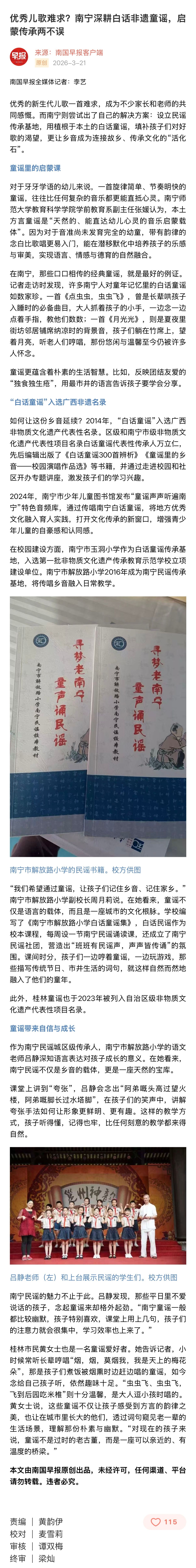 【南国早报客户端】优秀儿歌难求?南宁深耕白话非遗童谣,启蒙传承两不误