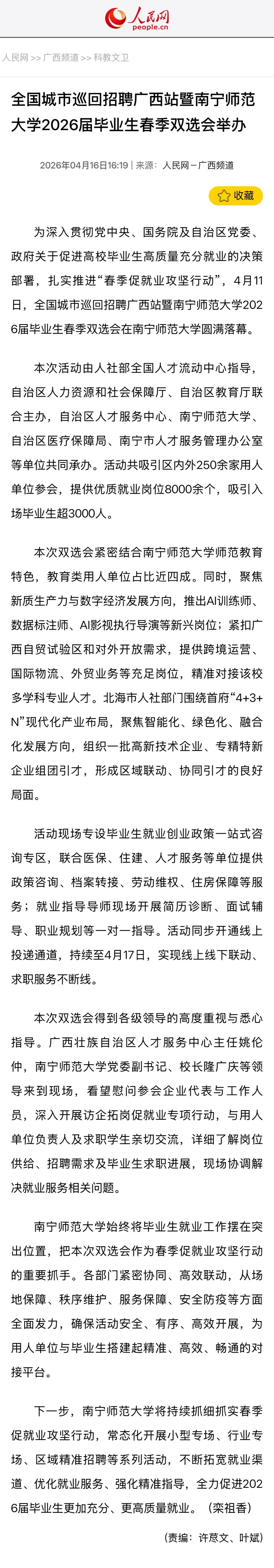 【人民网】全国城市巡回招聘广西站暨完美官方在线入口2026届毕业生春季双选会举办