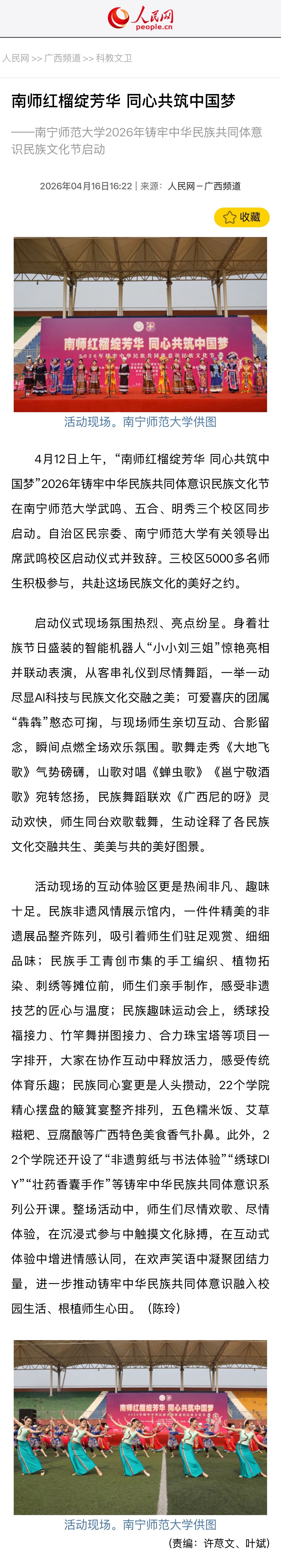 【人民网】南师红榴绽芳华 同心共筑中国梦 ——完美官方在线入口2026年铸牢中华民族共同体意识民族文化节启动