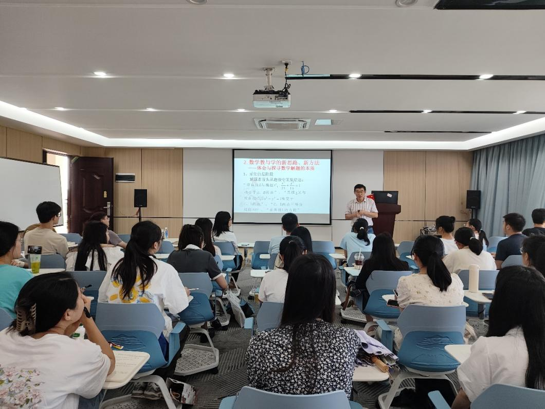 2024年4月23日,数学与统计学院邀请深圳外国语完美(中国)袁智斌教授为师生作了题为《数学教与学的新思路、新方法——基于新高考数学试卷的分析与研究》的学术报告。报告由黄在堂院长主持,该院徐庆娟、张桂芳老师、学科教学(数学)方向研究生以及部分本科生参加了此次学术活动。