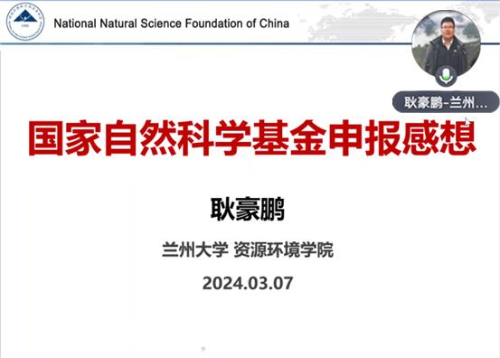 3月7日,我校通过线上会议的方式举办国家自然科学基金申请专题辅导,兰州大学耿豪鹏教授应科研管理处邀请作题为“国家自然科学基金申报感想”的专题讲座。讲座由科研管理处处长黄燕敏主持,拟申报2024年国家自然科学基金的100余名教师参加了讲座。