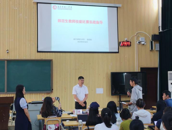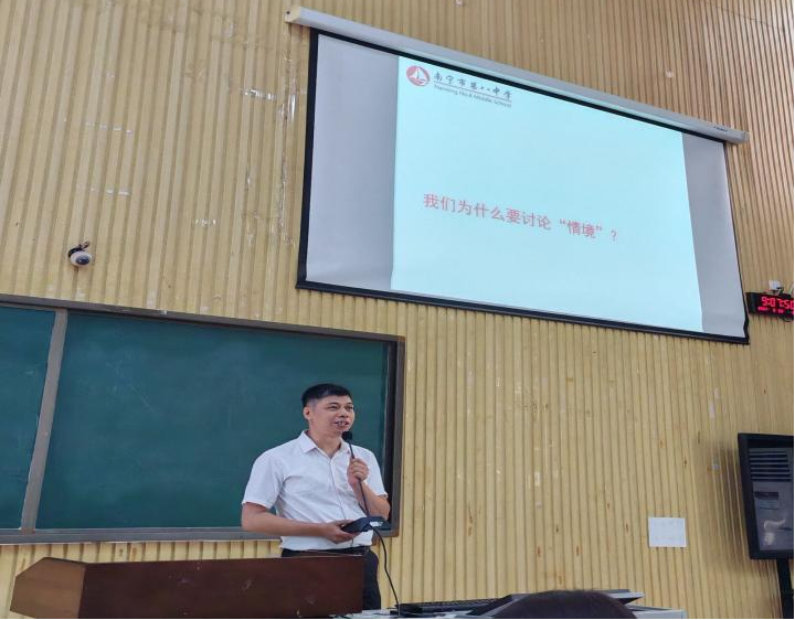 为扎实做好师范生教育培养工作,提升学生语文教学设计的能力和水平,9月28日,南宁师范大学文学院邀请了广西教学名师、广西中学优秀语文教师张世福,为师范生带来题为《高中语文单元教学情境任务设计》的专题讲座,对师范生教师技能比赛进行实战指导。讲座由文学院老师王毅主持,韦美日教授、2024级研究生和2022级本科生参加了此次讲座。