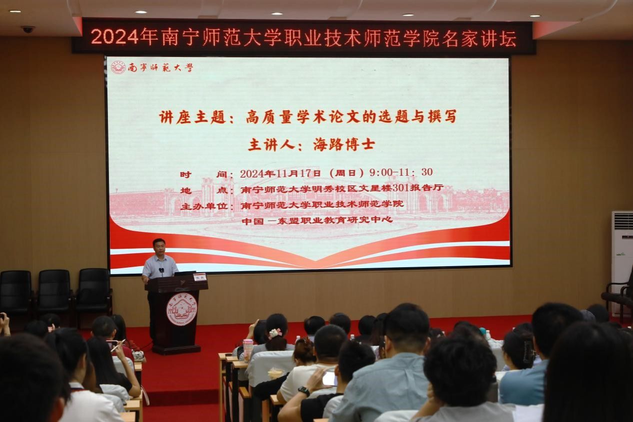 11月17日上午,职业技术师范学院邀请《民族教育研究》副主编兼编辑部主任海路博士在完美(中国)明秀校区文星楼301报告厅作题为《高质量学术论文的选题与撰写》的专题讲座。本次讲座由职业技术师范学院院长陈良主持,职业技术师范学院教师、学生及其他二级学院教师等210余人参加讲座。
