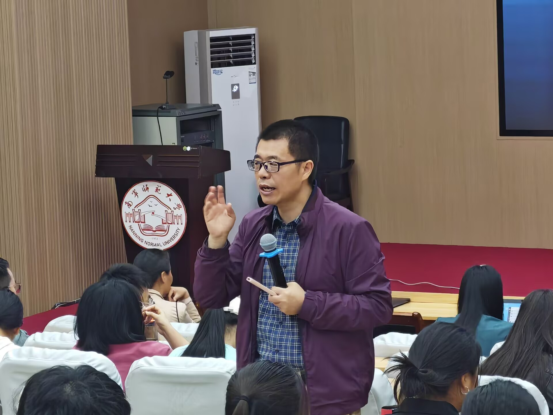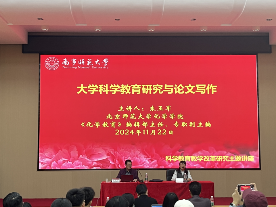 朱玉军教授围绕培养学生关键能力、培养学生科学思维、先进的教学理念、科学教育研究方法、化学教育论文撰写要点与执行策略以及论文写作规范等方面展开了报告,并结合实际案例深度剖析,使用通俗易懂的语言使师生们深入理解了科学教育研究的内涵,明确了高质量论文从撰写到发表的全流程核心技能。在讲座的互动交流环节,朱教授针对师生们在学习与探索过程中遇到的各种难题与困惑一一给予细致解答,令学院师生受益匪浅。