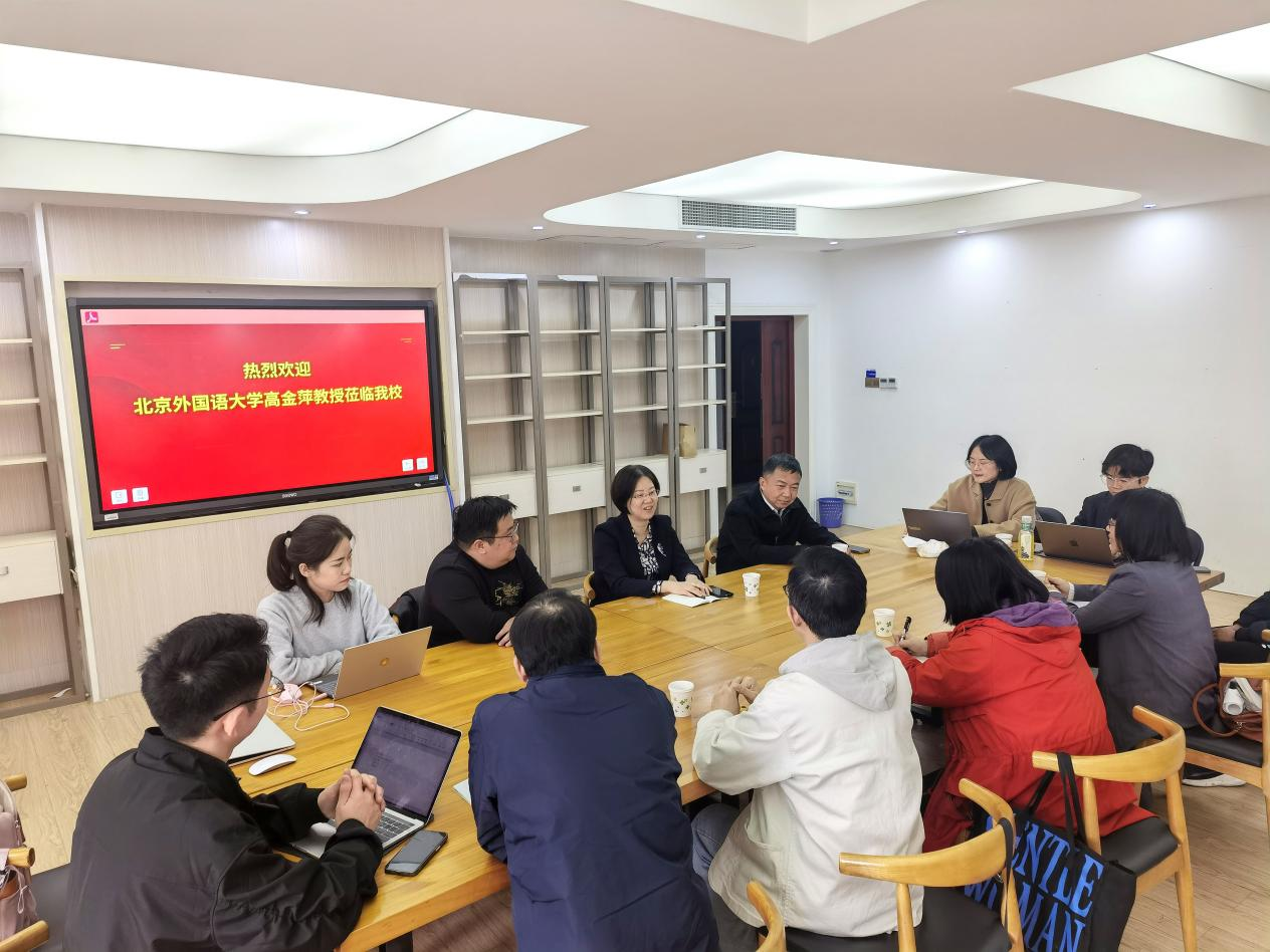 12月9日,北京外国语大学国际中国文化研究院院长、博士生导师高金萍教授受邀到新闻与传播学院讲学并开展国家社科项目辅导。我院周边传播研究院副院长徐健、新闻与传播学院副院长梁颖涛、副院长周飞伶及青年教师参加了本次辅导会。