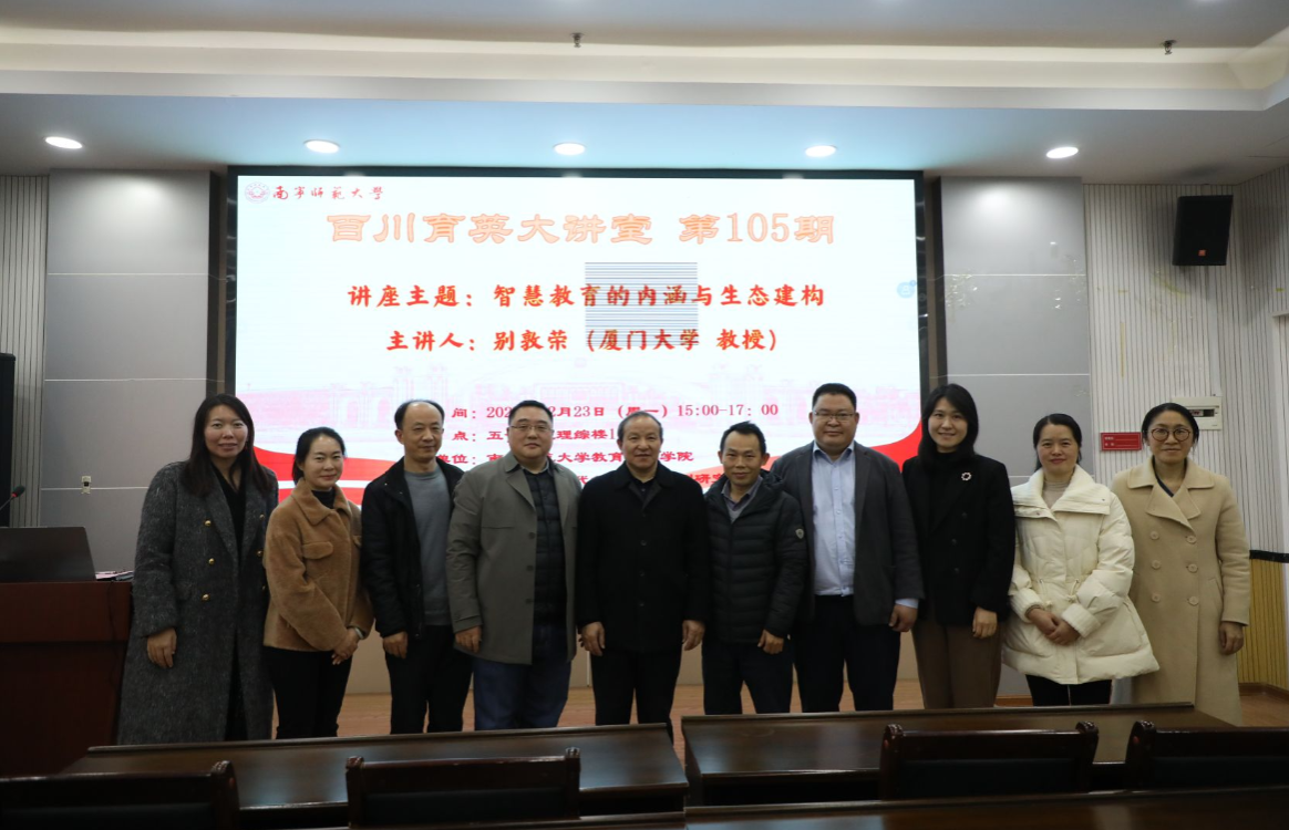 为深化师生对智慧教育前沿动态的理解,拓宽学术研究的广度和深度,12月23日下午,由南宁师范大学教育科学学院、广西教育现代化质量检测研究中心主办的《百川育英大讲堂》第105期讲座如期开讲。本次活动邀请了厦门大学教育研究院院长别敦荣教授作题为《智慧教育的内涵与生态建构》的学术讲座,讲座由教育科学学院院长李强教授主持。