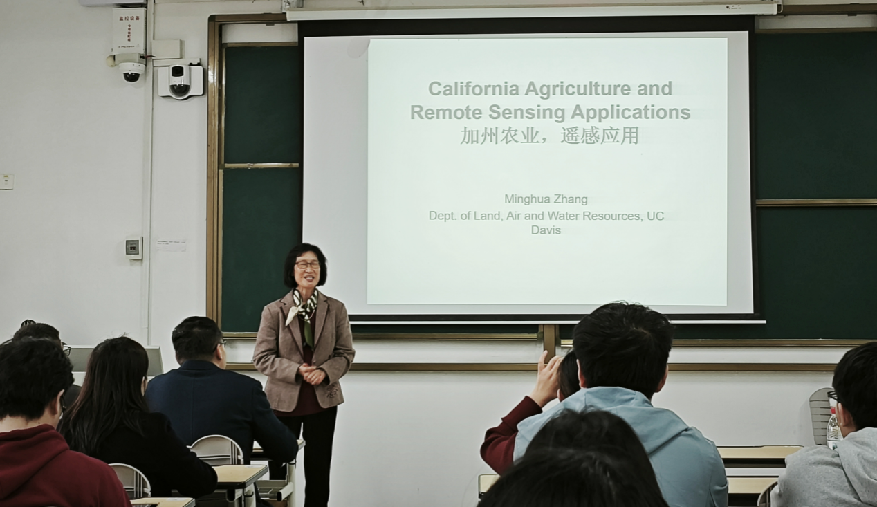 会议伊始,赵银军副院长对张明华教授的到来表示热烈欢迎。随后,张明华教授以“加州农业,遥感应用”为主题,介绍加州农业发展现状和遥感技术在农业上的应用案例,并对她结合科研团队目前遇到的问题及其校正手段进行分享,深入分析遥感技术可以利用植被反射的光谱波段信息鉴定植被是否健康、如何提高遥感技术分辨光谱、有效识别地物信息的能力等问题。