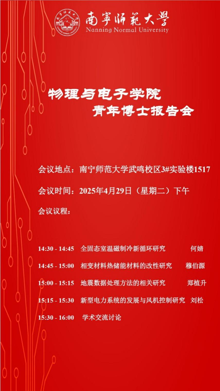 为加强青年博士学术交流,展现人才引育成效,推动科研高质量发展,物理与电子学院于2025年4月29日举办“青年博士学术报告会”。报告会由院长助理徐艳华教授主持。