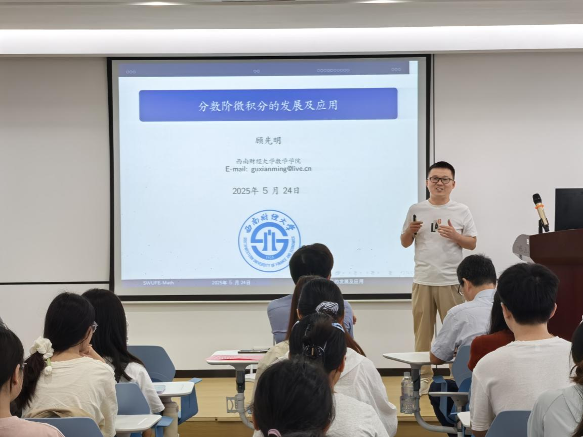 5月24日,广西应用数学中心(南宁师范大学)诚邀西南财经大学顾先明副教授为中心的核心骨干成员、硕士研究生群体及部分本科生带来了一场主题为“分数阶微积分的发展及应用:从过去到未来”的学术报告。本次报告由数学与统计学院副院长刘利斌教授主持。