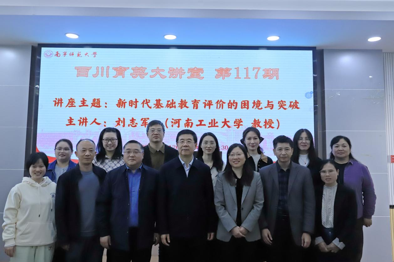 为深入解读新时代基础教育评价改革的核心要义,搭建学术研究与教育实践的沟通桥梁,助力教育强国建设,11月26日,由南宁师范大学教育科学学院主办、广西教育现代化与质量监测研究中心承办的《百川育英大讲堂》第117期讲座,在五合校区理综1003室顺利举行。本期讲座特邀河南工业大学党委书记刘志军教授担任主讲嘉宾,主题是“新时代基础教育评价的困境与突破”,教育科学学院院长李强教授主持讲座。
